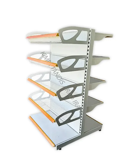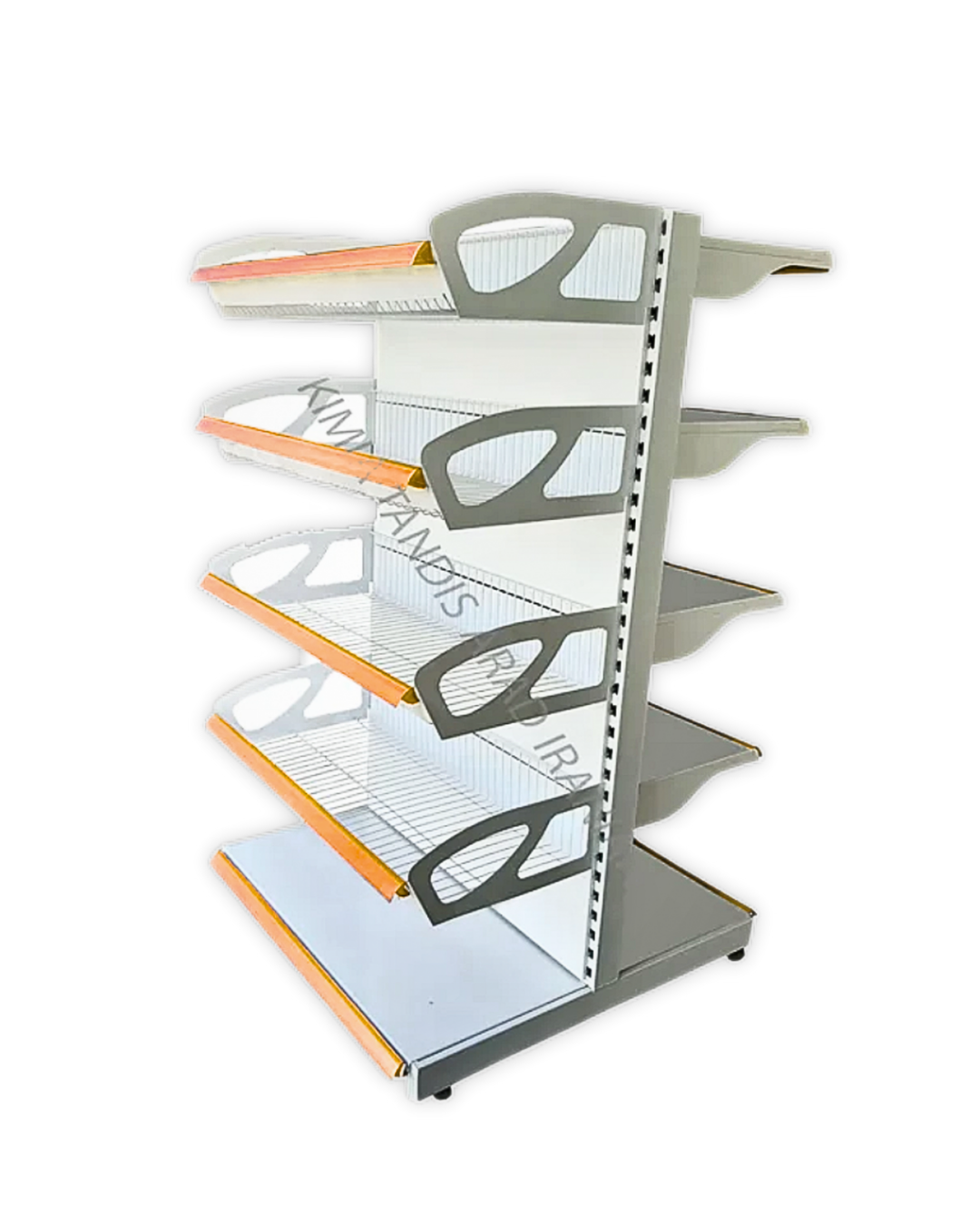 قفسه فروشگاهی دوطرفه با ارتفاع 170 - عمق کفی 40 - عمق طبقه 30 - تعداد طبقات 5 - دارای حائل ورق یکسره