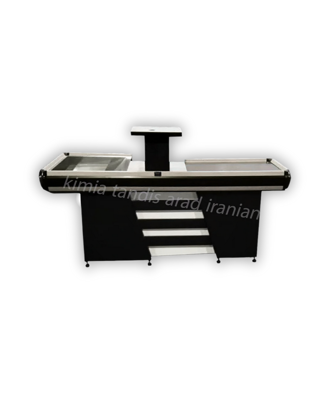 ساختار بدنه از ورق فولادی ضخیم با پوشش رنگ الکترواستاتیک بوده که در برابر ضربه، رطوبت و زنگزدگی مقاوم است. صفحه روی میز از استیل ضدخش ساخته شده تا دوام بالا و جلوهای شیک به محیط فروشگاه ببخشد.